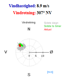 Diagram 3 viser vindhastigheden. Vindhastigheden angives i m/s (meter per sekund) for de sidste 24 timer.