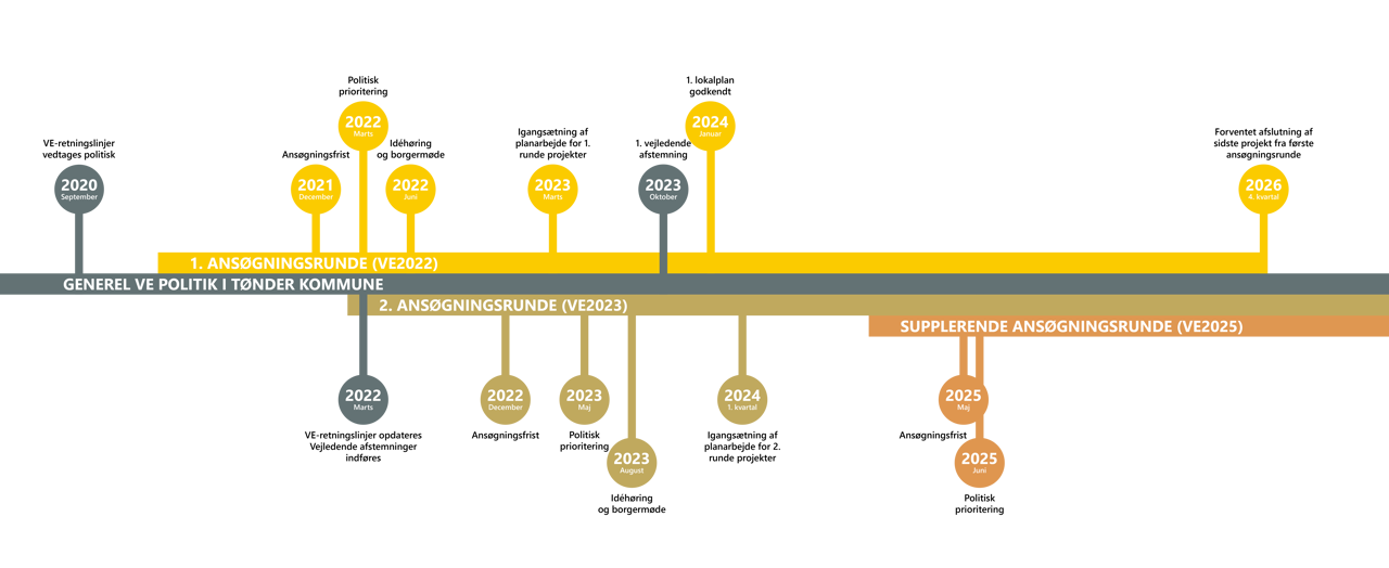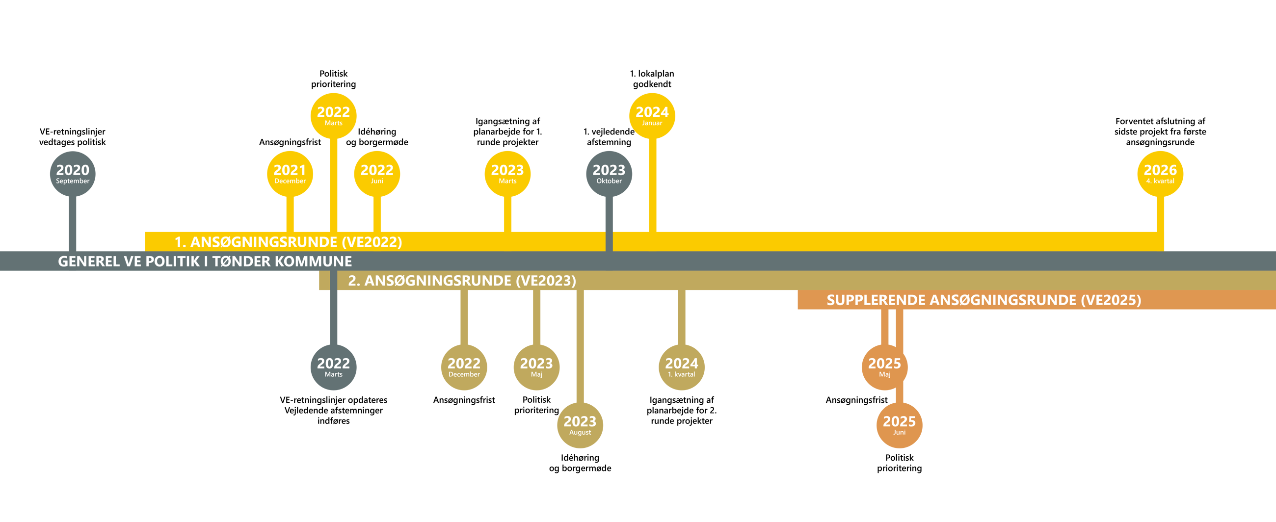 Tidslinjen viser et generelt overblik for Tønder Kommunes VE indsats.